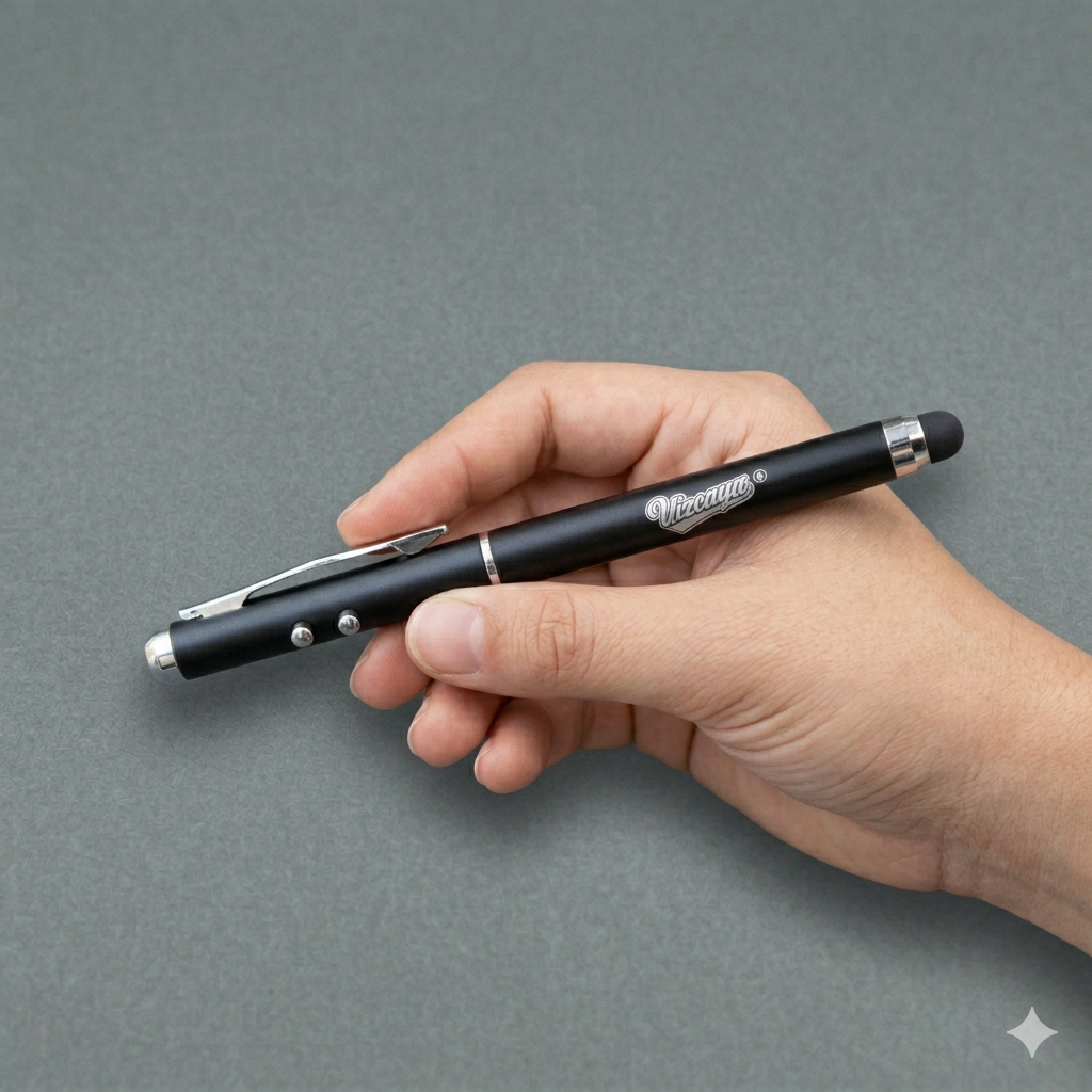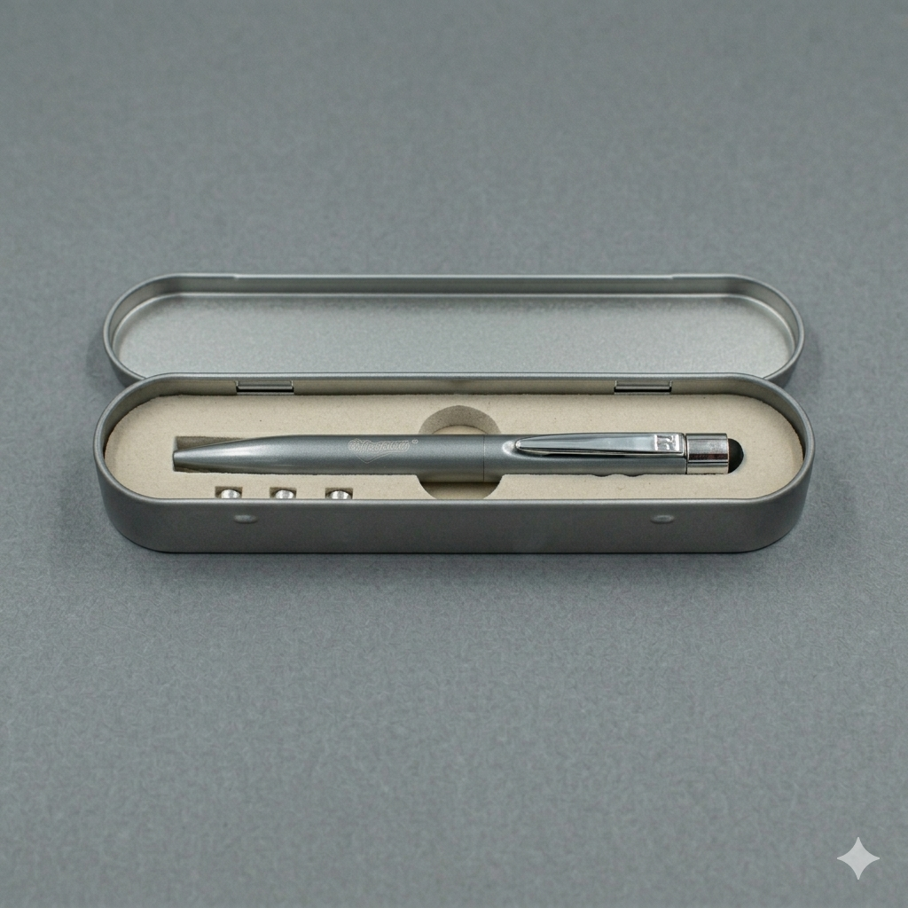 Este práctico bolígrafo cuenta con puntero láser integrado, perfecto para exposiciones, presentaciones y clases dinámicas.
