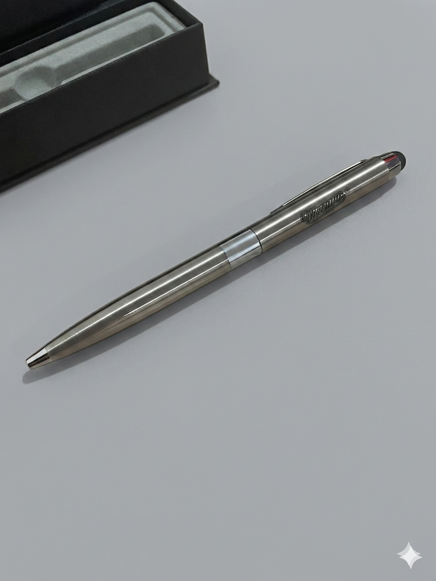 Su pulsador incorpora un puntero touch de alta precisión, ideal para navegar en tablets y smartphones sin dejar huellas. Estética minimalista y funcionalidad total en un solo accesorio.