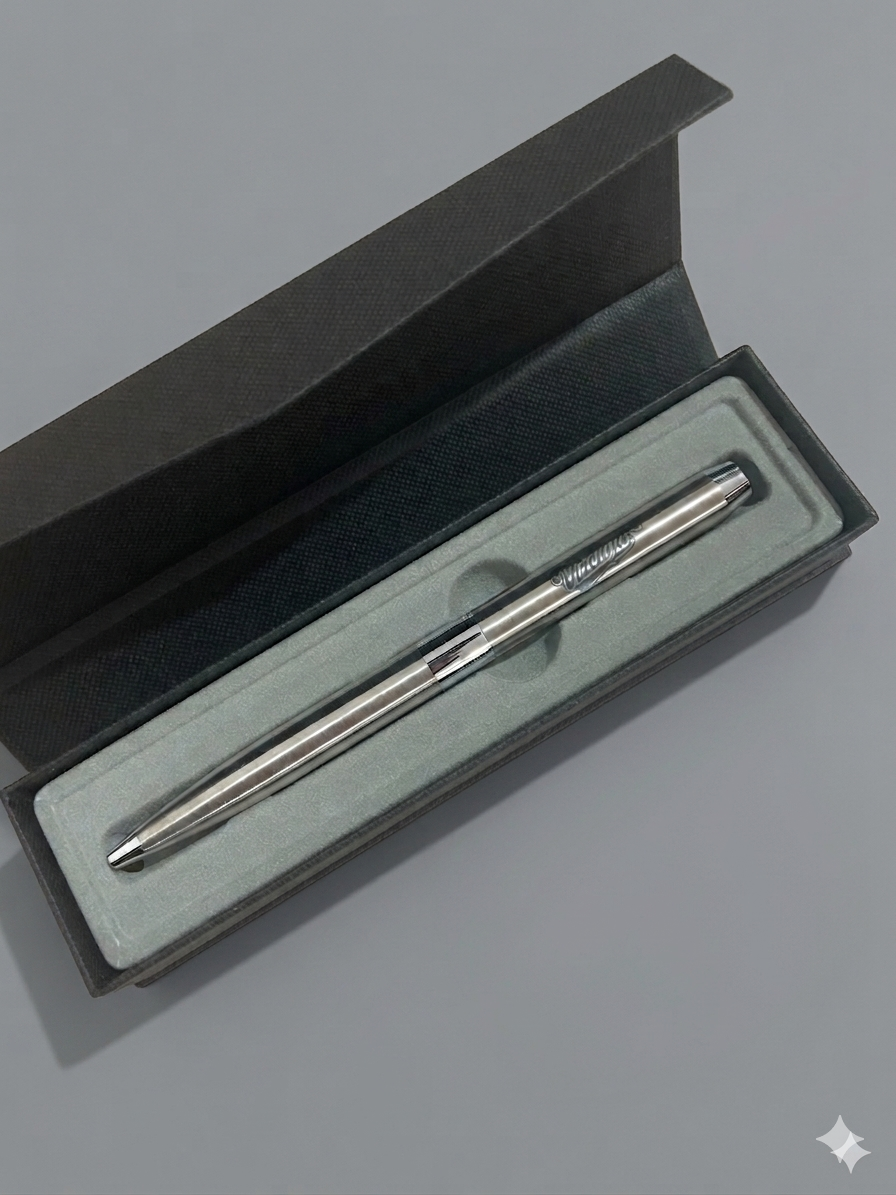 Diseñado con un cuerpo metálico de acabado refinado, este bolígrafo retráctil combina la suavidad de una escritura clásica con la practicidad moderna.
