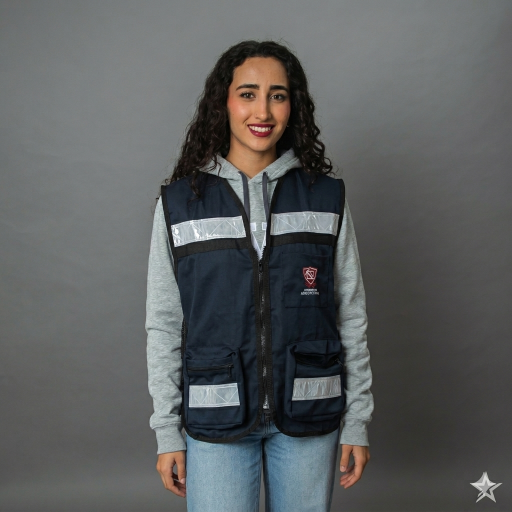 Chaleco institucional diseñado para brindar comodidad, seguridad y presencia profesional en prácticas y actividades de campo.