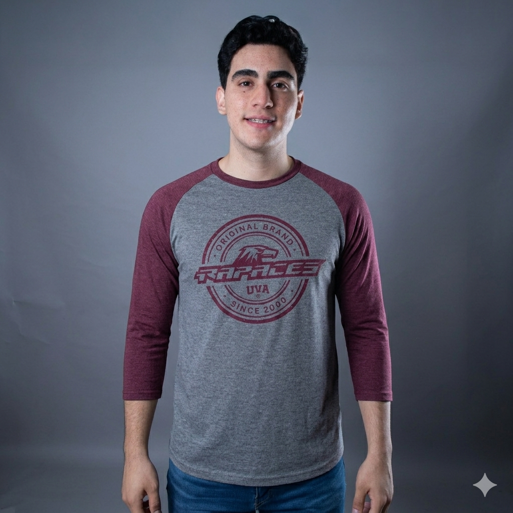 Playera para hombre con manga 3/4, confeccionada en 80% algodón de tela suave y cómoda. Su estilo deportivo-casual la hace ideal para la escuela o para hacer deporte. Cuenta con impresión en serigrafía blanca con la palabra ‘UVA’.