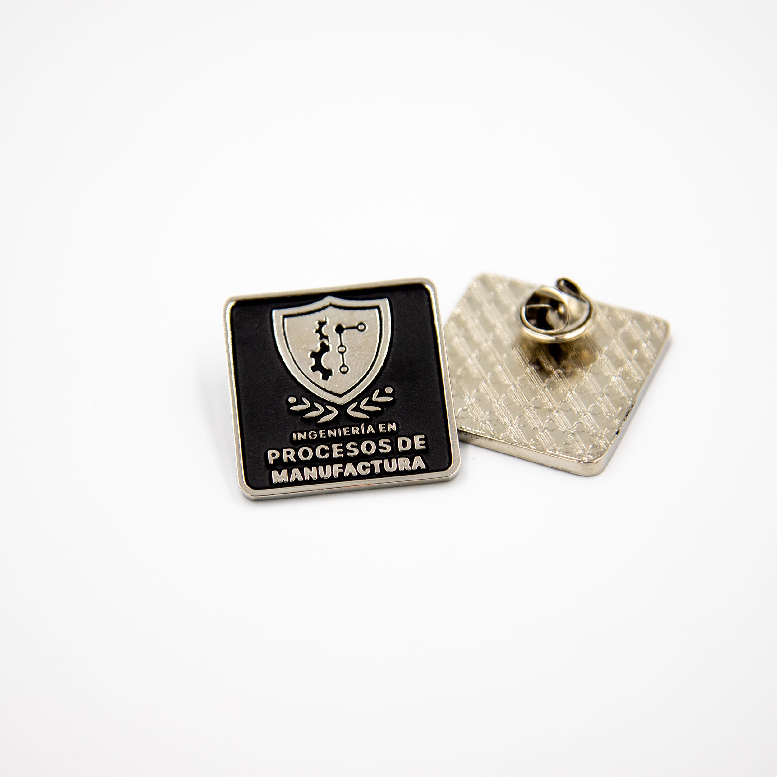 Cuentan con broche metálico de seguridad en la parte posterior, ideal para portar en uniformes, sacos, batas o prendas institucionales.